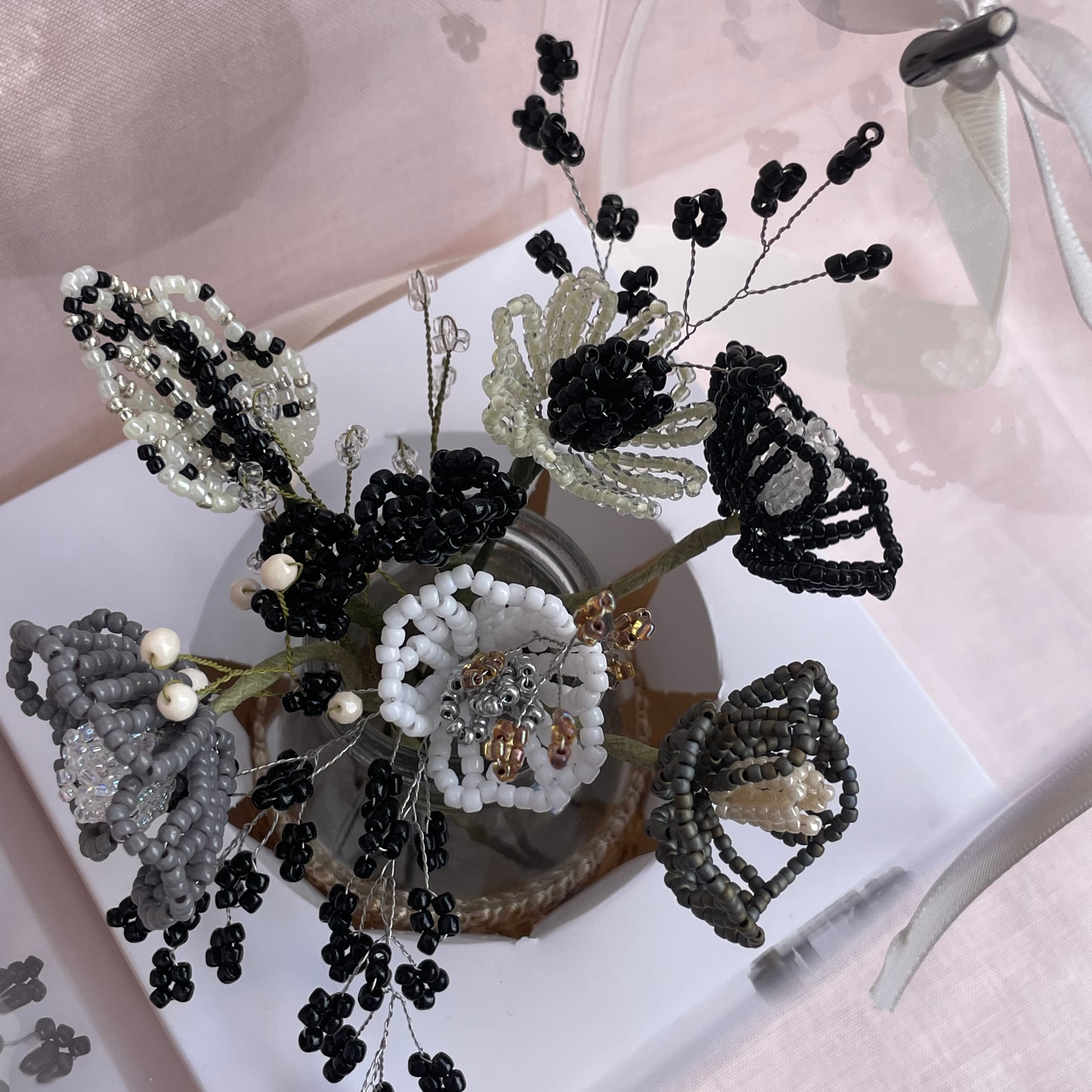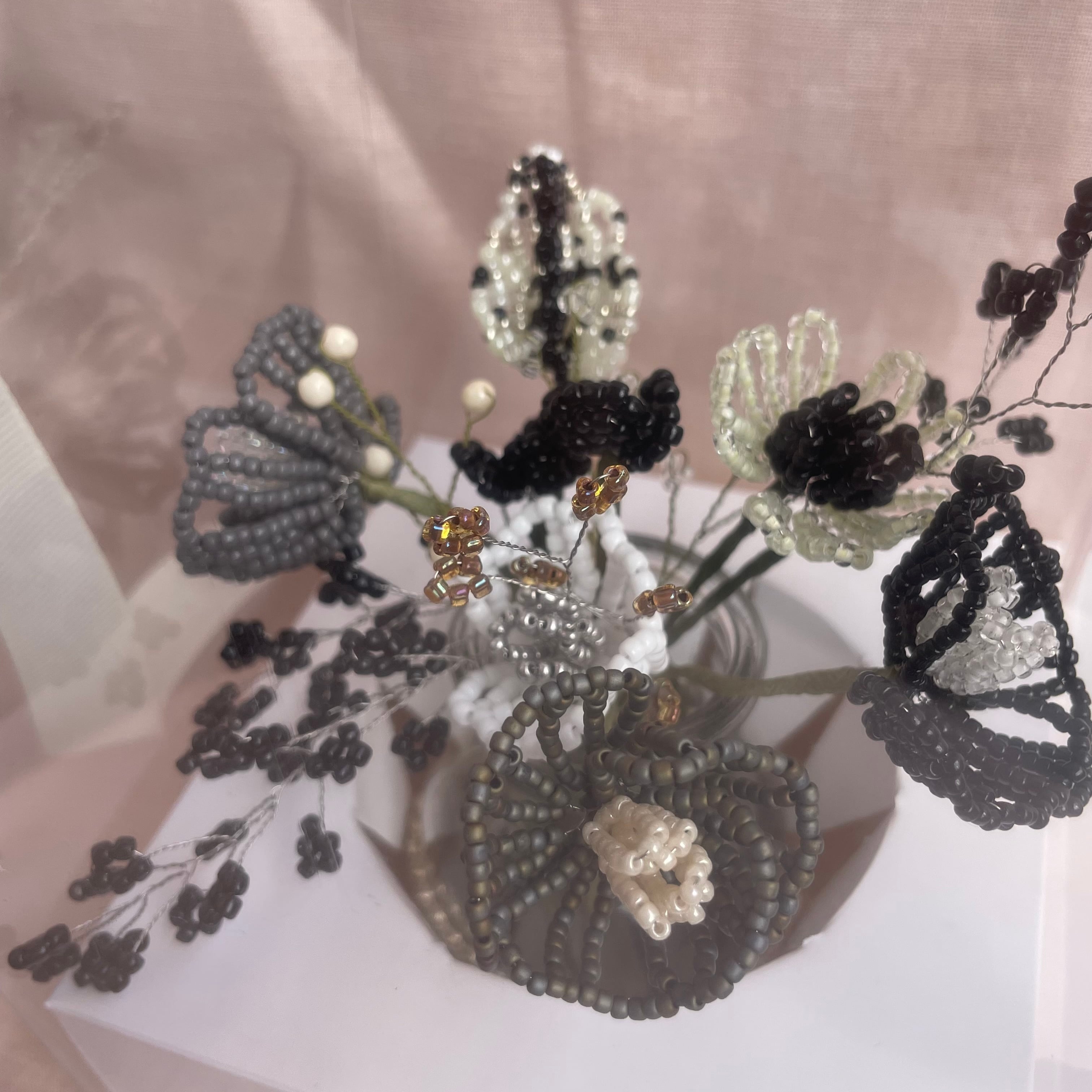 作品はすべて手作業で制作したビーズフラワーです。