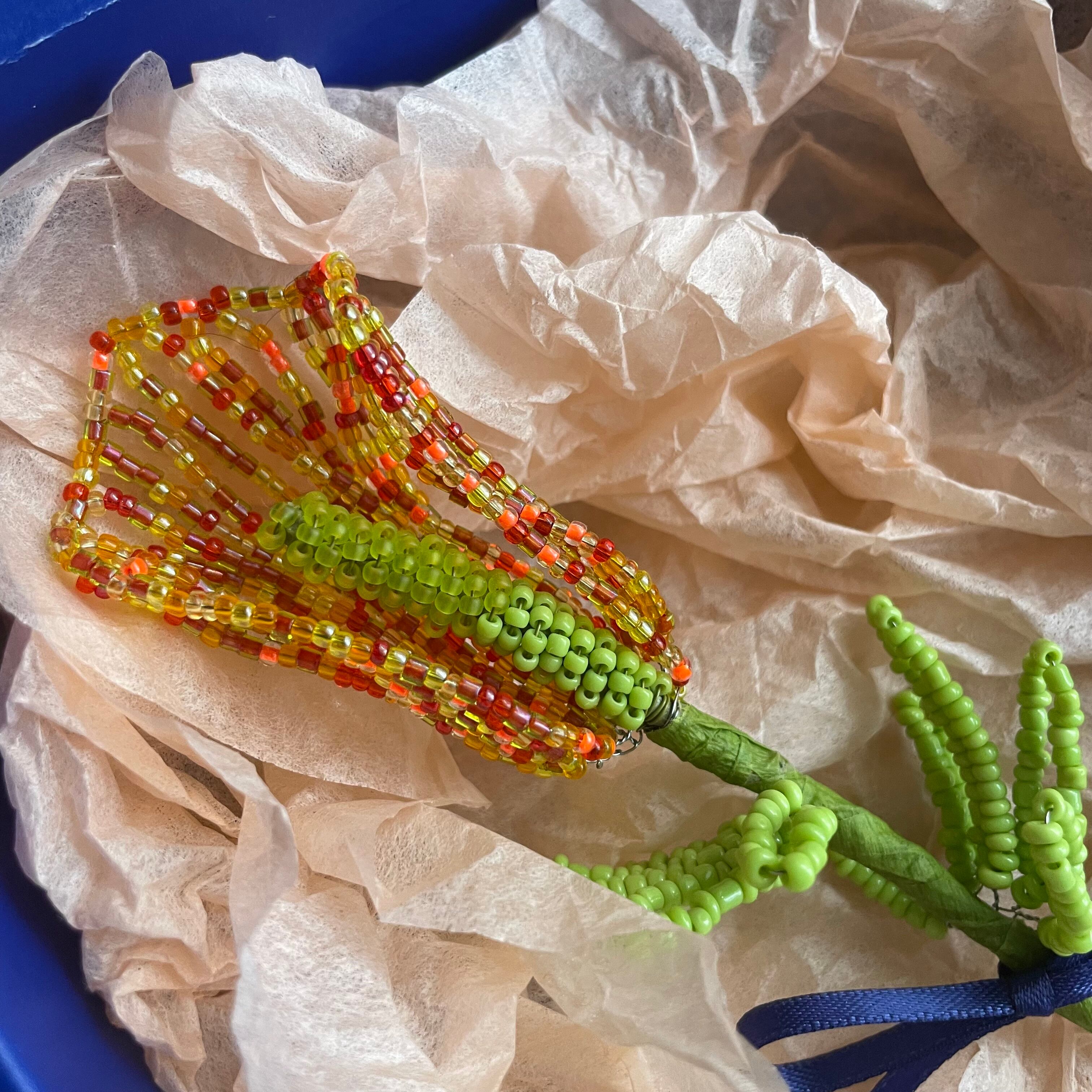 作品はすべて手作業で制作したビーズフラワーです。