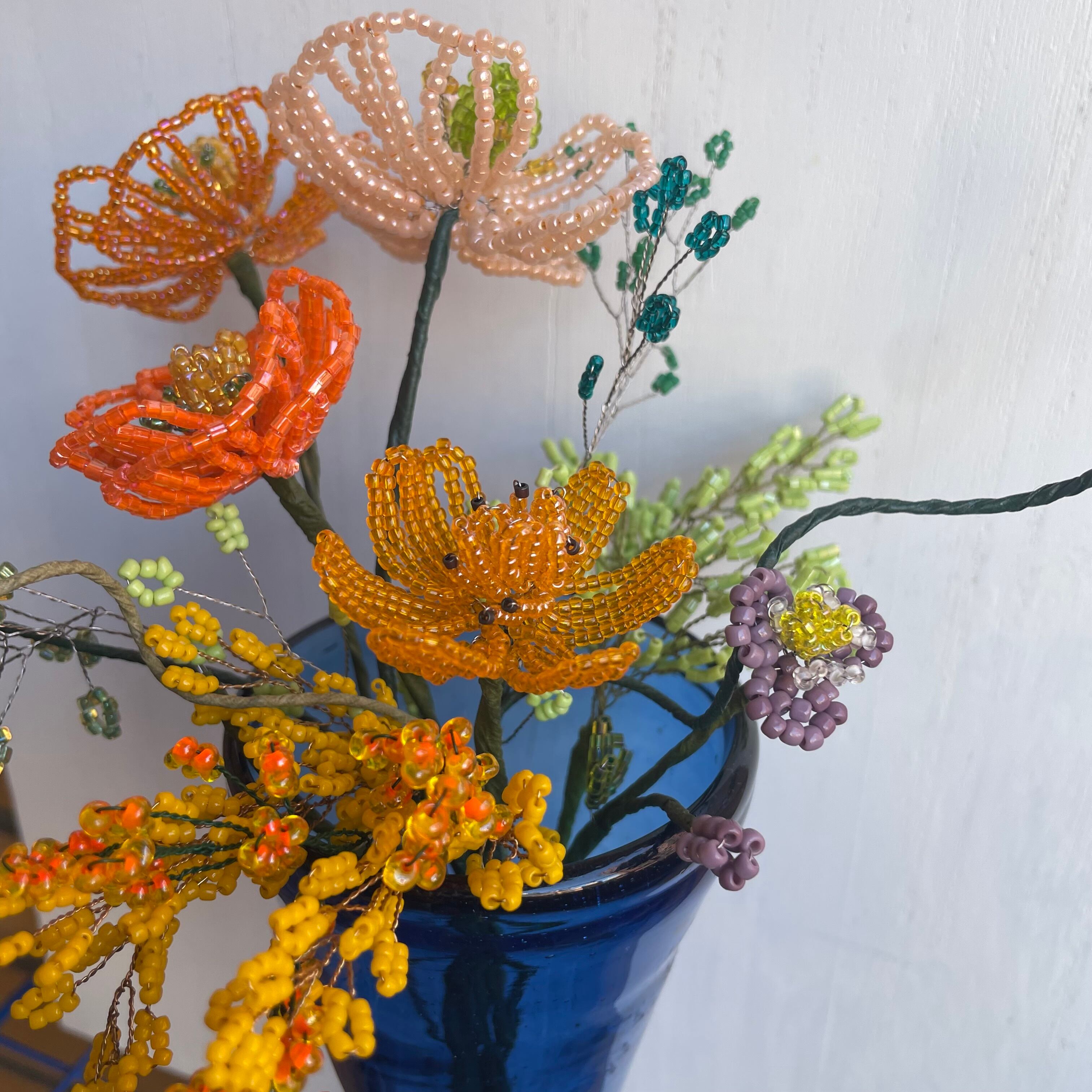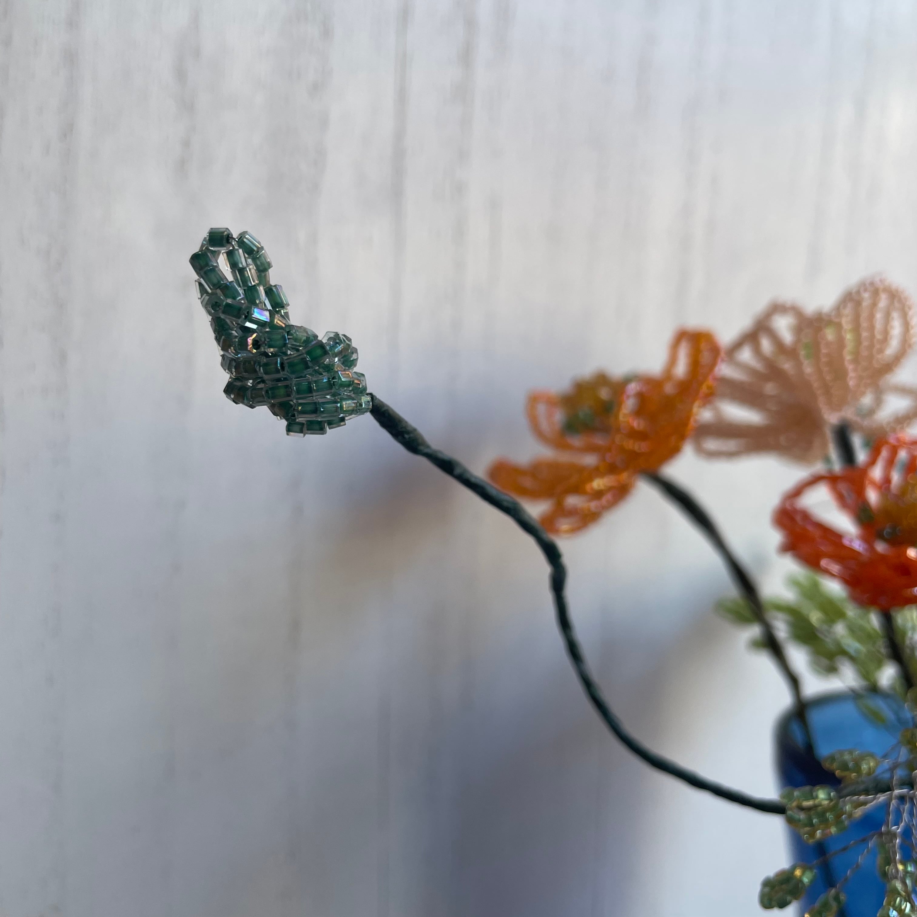 こちらは花びら1つ1つ全て手作業で作ったビーズフラワーです。