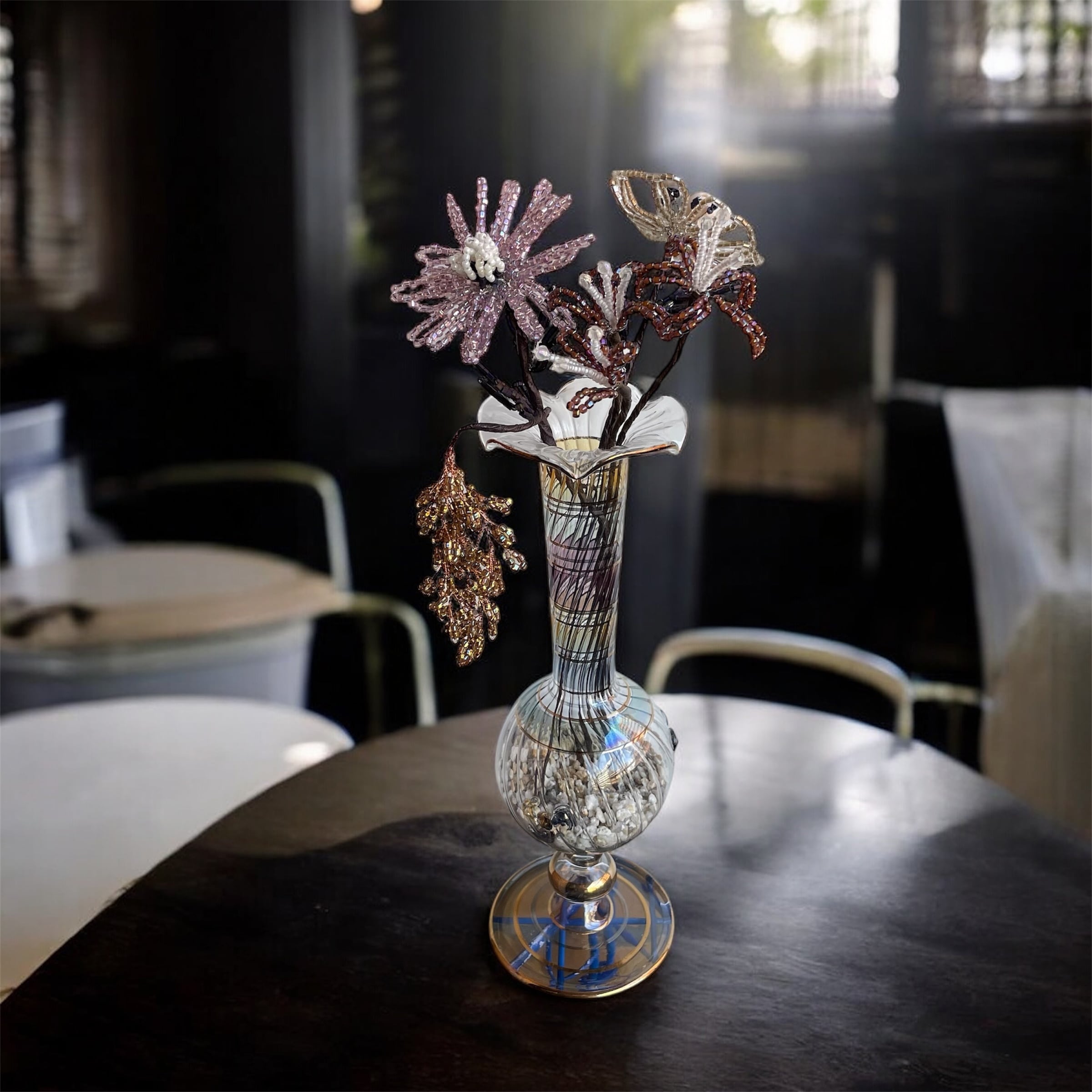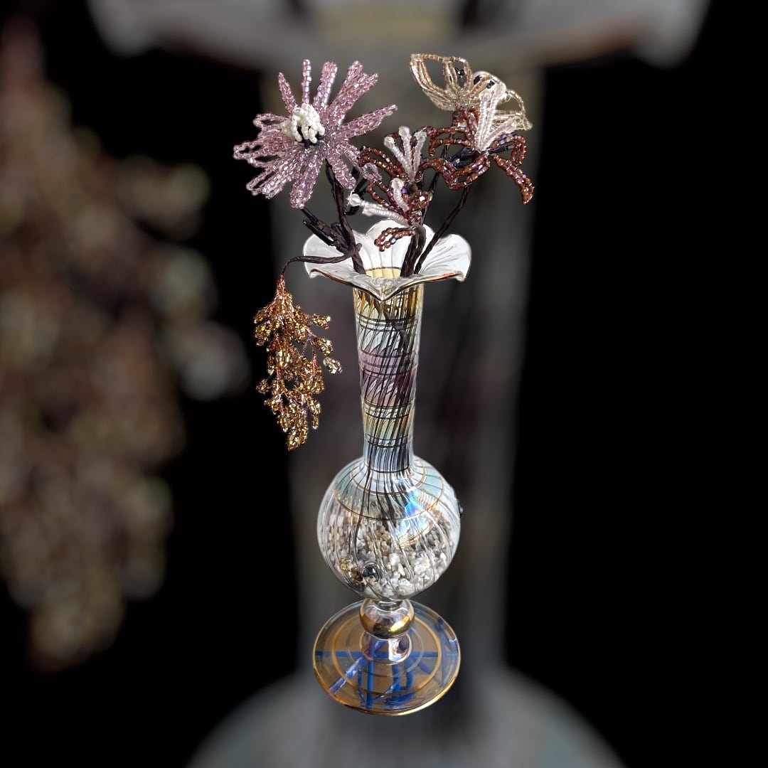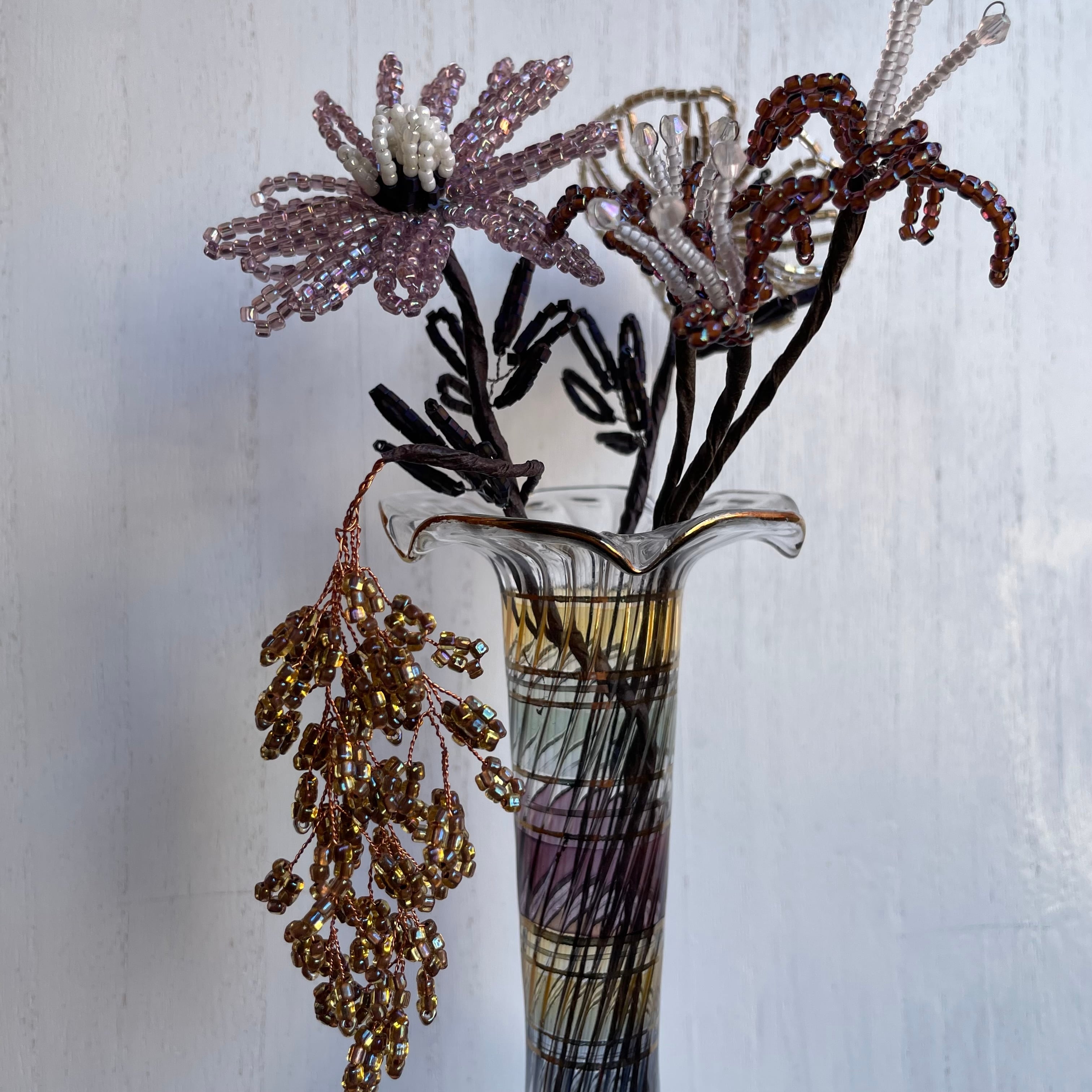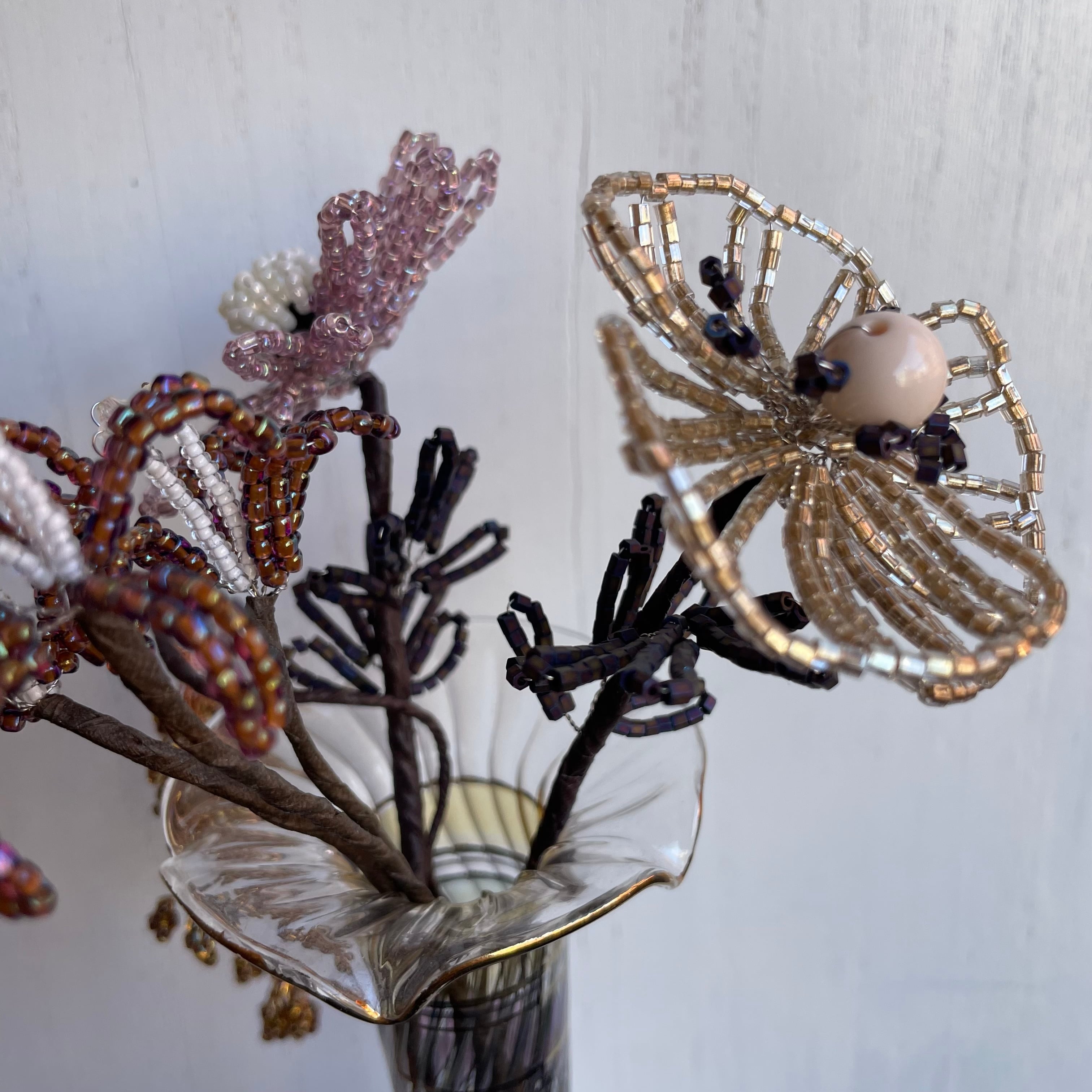 こちらは花びら1つ1つ全て手作業で作ったビーズフラワーです。
