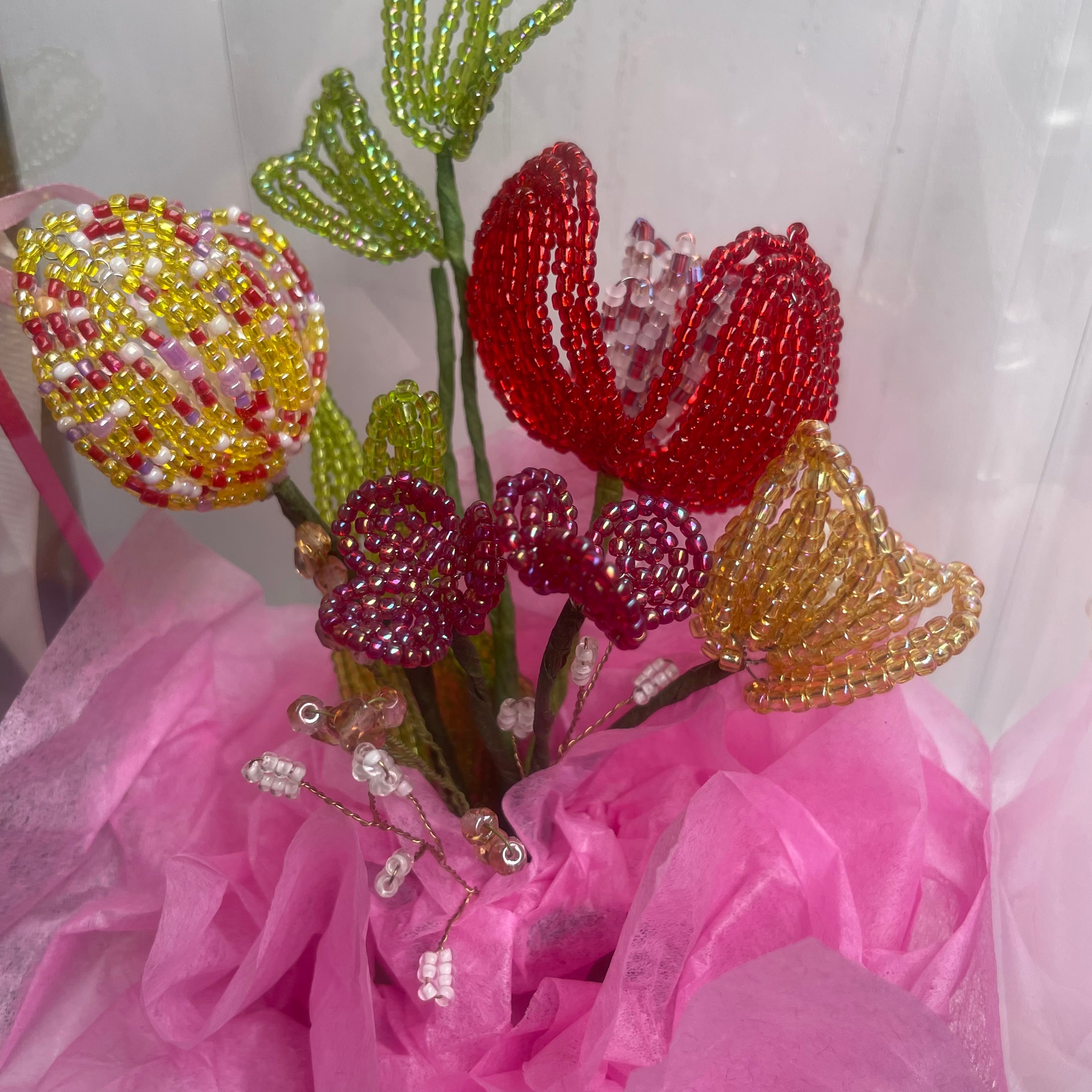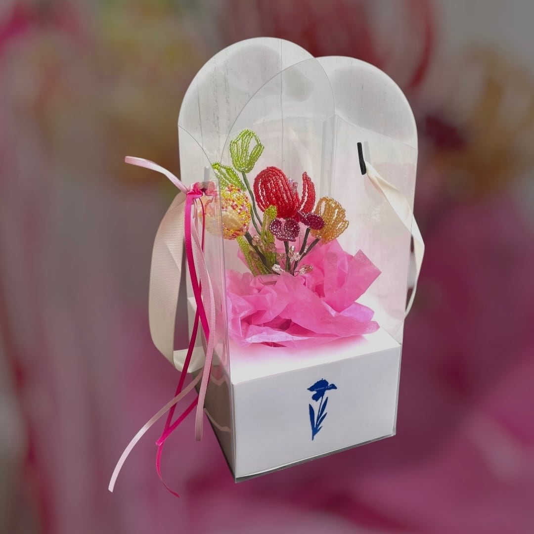 母の日の贈り物や、毎日頑張る自分へのご褒美に。 一粒一粒、糸とワイヤーで編み上げた「ビーズフラワー」をお届けします。 Point • 水やり不要で、ずっと綺麗なまま。 • 光を反射する、ガラスビーズ特有の透明感。 • 生花にはない、アンティークのような佇まい。 あなたの日常が、優しく輝き始めますように。