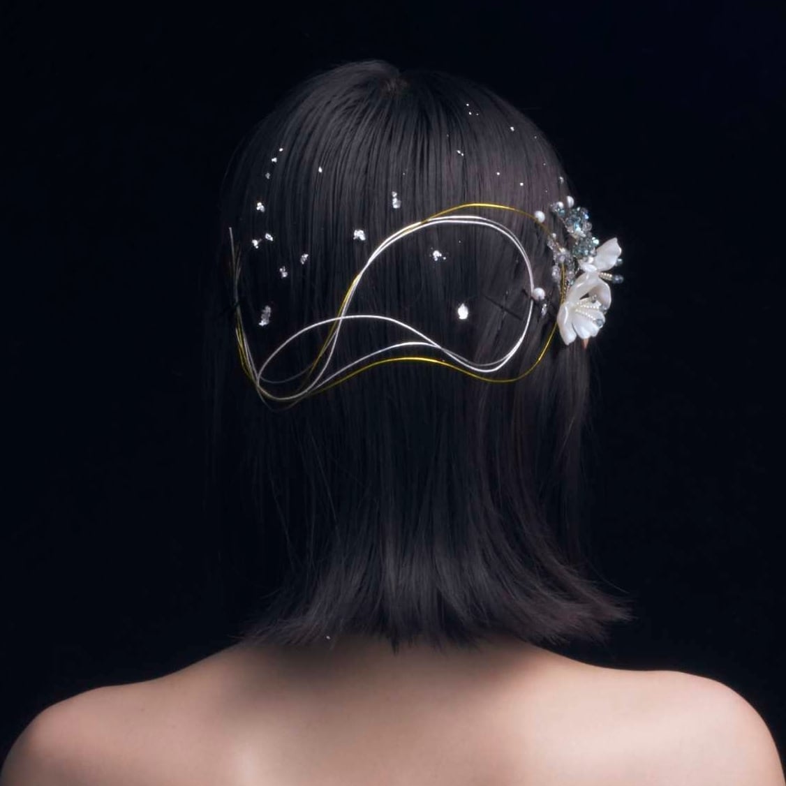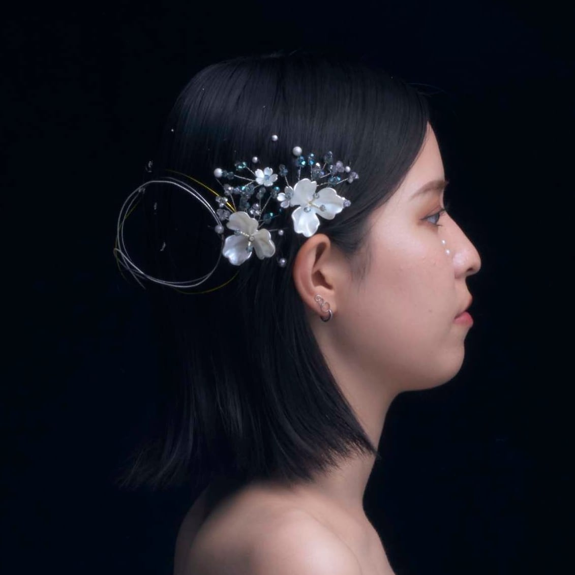 【Beads flower】blue hair dress