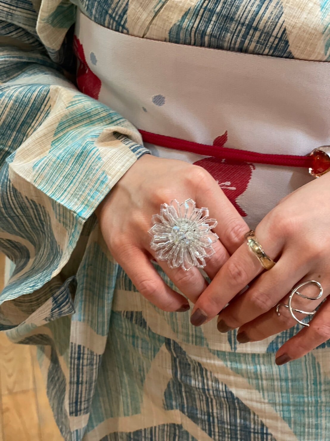 花びら1つ1つ全て手作業で作ったビーズフラワーリングです。